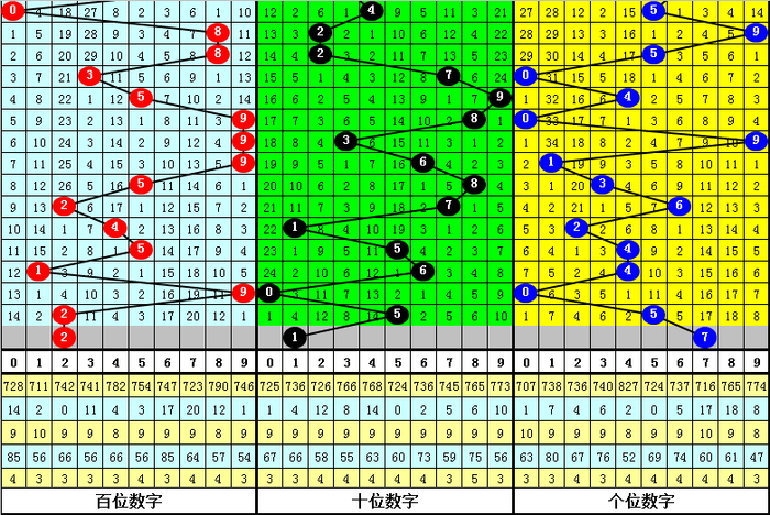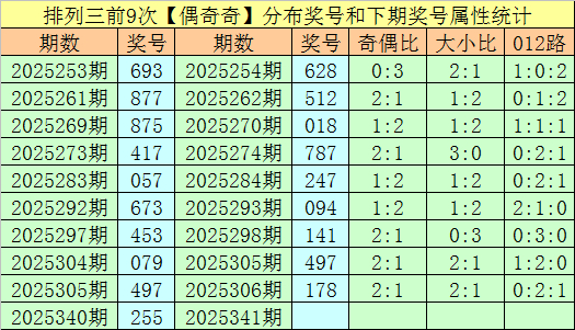 在最近9期开零散偶散播:偶奇奇的奖号为:693-877-875-417-057-673-453-079-497,鄙人期出现号码区分为:628-512-018-787-247-094-141-497-178。其中百十个位号码散播情况如下: