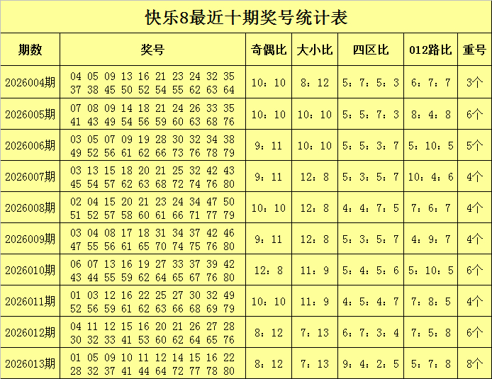 福彩现象8第2026013期开奖总结:01 05 09 10 11 12 14 15 16 22 28 32 37 41 44 64 72 77 78 80,其中奖号奇偶比为8:12,大小比为7:13山东路通通讯服务有限公司,四区比为9:4:2:5,012路比为5:7:8,重号8个:11、12、15、16、28、32、41、64。